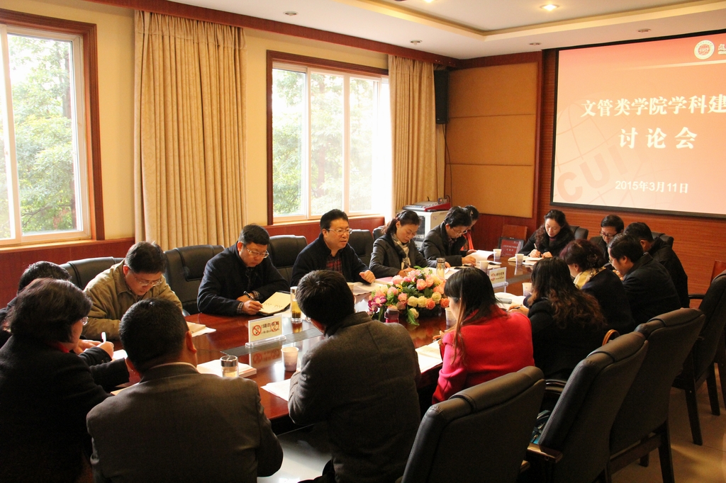 根据学校2015年工作要点和工作部署,校长周激流于3月11日上午在龙泉校区主持召开了专题讨论会,部署文管类学院学科建设工作。学校领导贺盛瑜、向武出席会议,管理学院、统计学院、商学院、物流学院、文化艺术学院、外国语学院、政治学院的院长和分管学科建设工作的副院长,以及党政办公室、研究生处、科技处和组织人事处的负责人参加了会议。