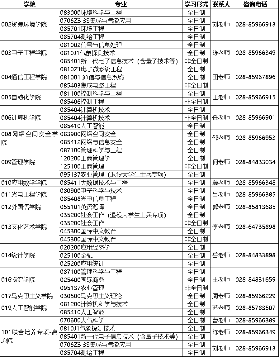 2、申请调剂非全日制招生专业的考生,应提前查阅《成都信息工程大学2025年硕士研究生招生专业目录》,了解授课方式。