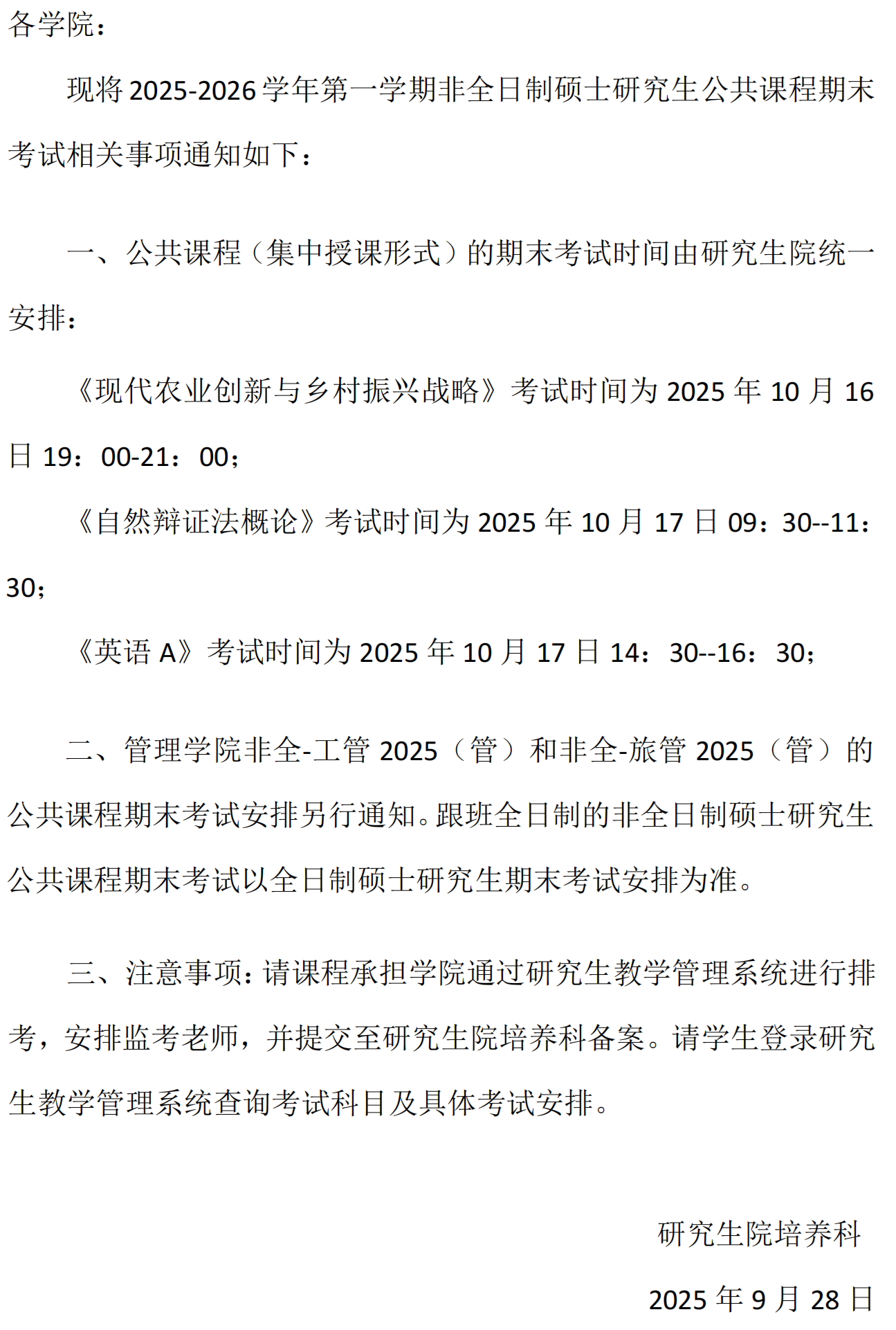 下一篇:关于2025级硕士研究生2025-2026学年第一学期 公共课程选课的通知