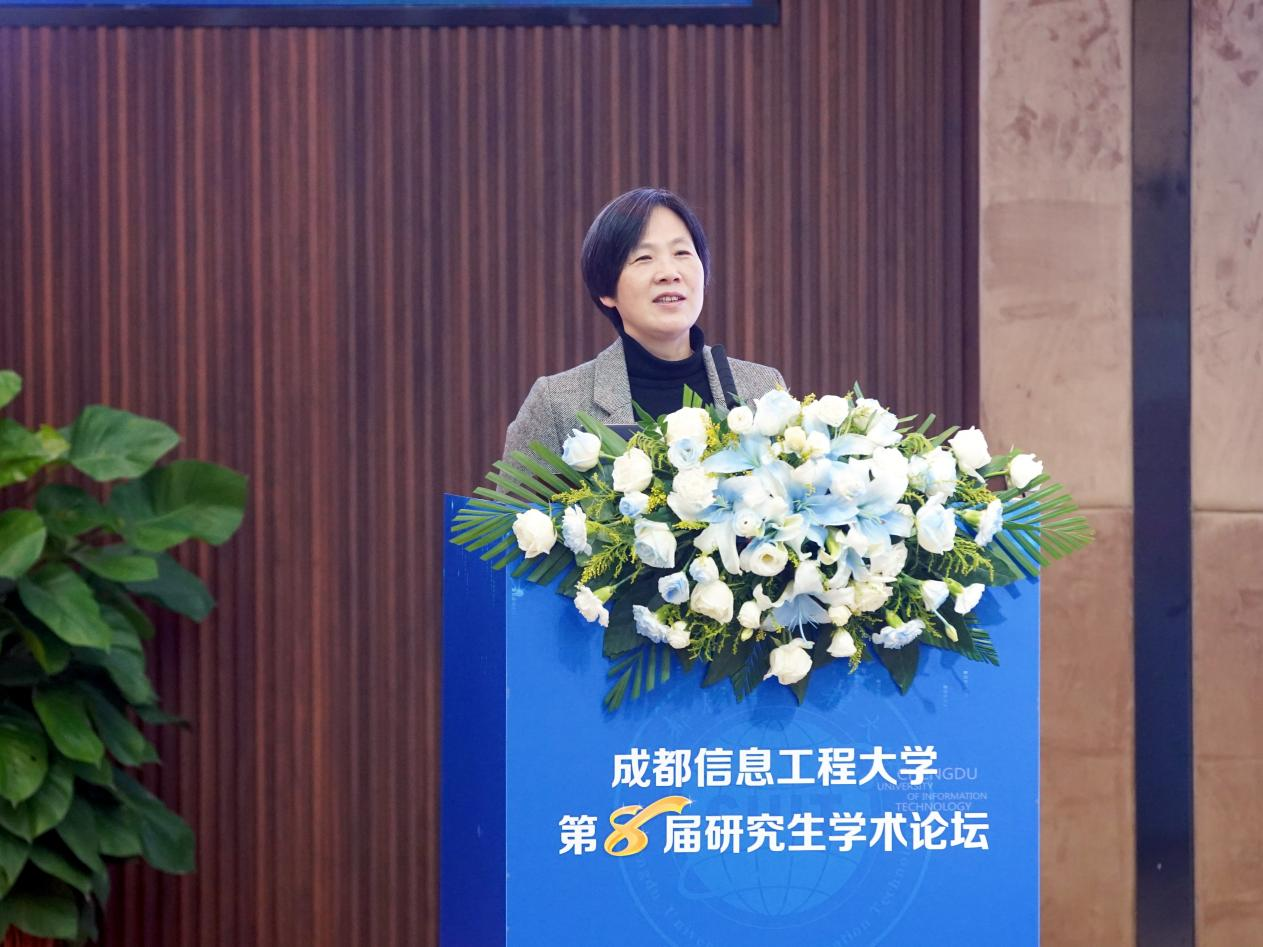 在开幕式致辞中,罗小蓉副校长回顾了近年我校在学科建设和研究生教育方面取得的成效;强调了研究生学术论坛在激发创新热情、促进学术交流与合作方面的作用和意义;希望通过本届论坛进一步营造浓厚的学术氛围,助力广大研究生成长为驱动时代发展的优秀创新人才,为服务国家现代化建设贡献“成信”力量。